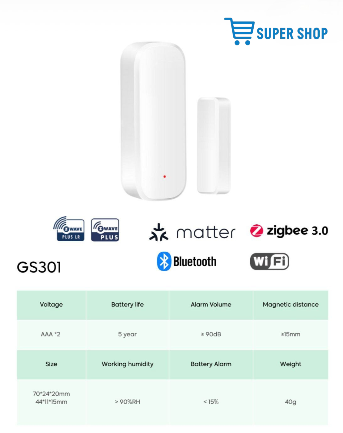 Für die nahtlose Integration in jedes Smart-Home- oder Sicherheitssystem entwickelt, überwacht dieser vielseitige Sensor mühelos alle Arten von Türen und Fenstern. Dank seines kompakten und ansprechenden Designs fügt er sich unauffällig in jede Umgebung ein, ohne viel Platz zu benötigen.